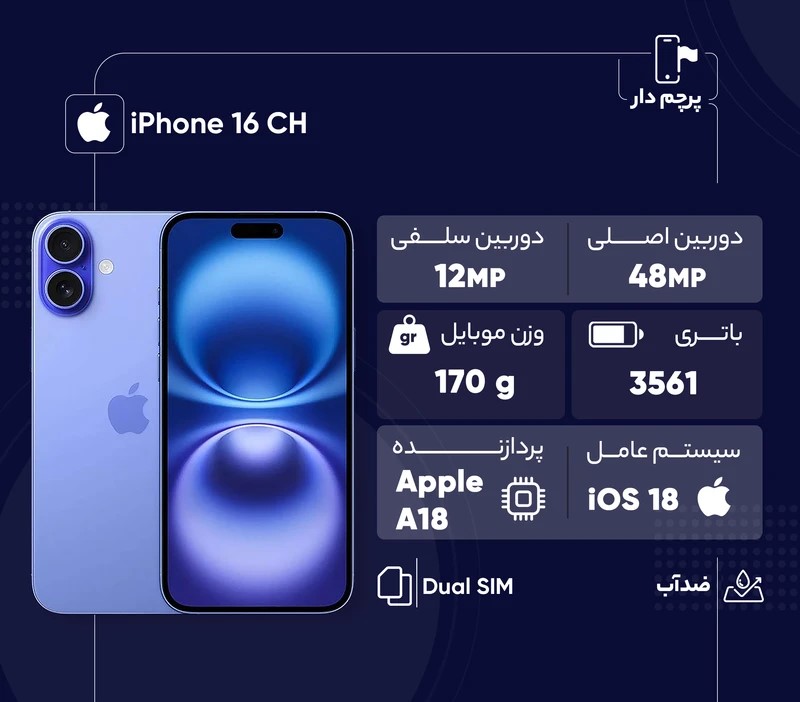 نوع سیم کارت : سایز نانو (۸.۸ × ۱۲.۳ میلیمتر)