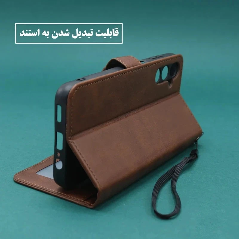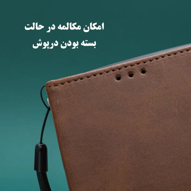 همچنین در قسمت کناری کیف، بندی تعبیه شده که از سقوط ناگهانی گوشی و یا سرقت آن جلوگیری می کند. از دیگر ویژگی های این کیف قابلیت استند شدن آن است که بسیار کارآمد و کاربردی است.